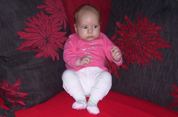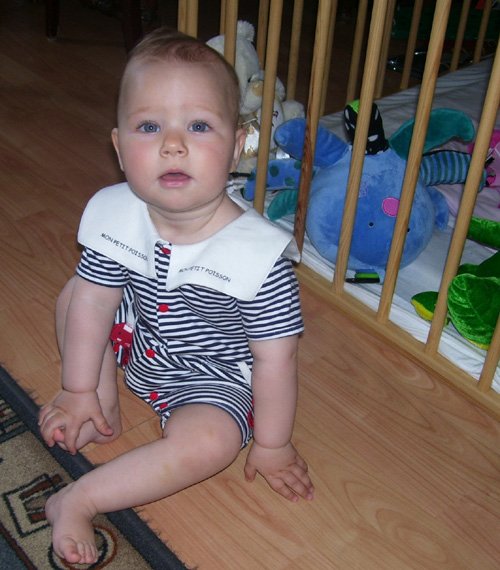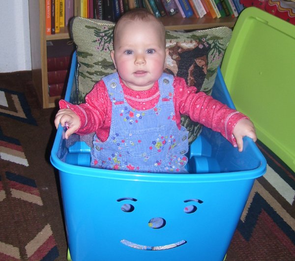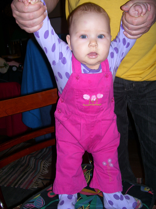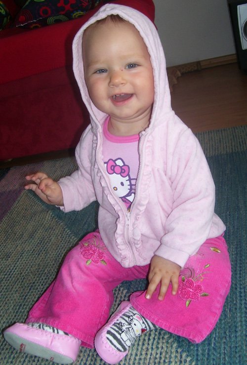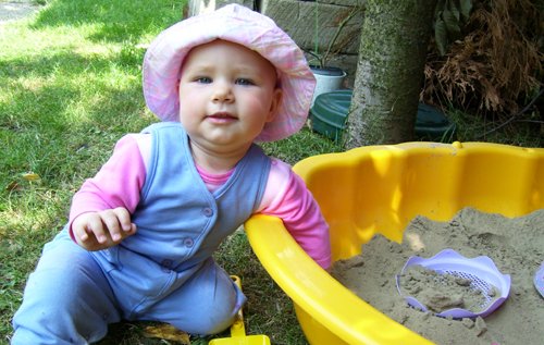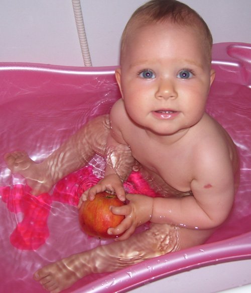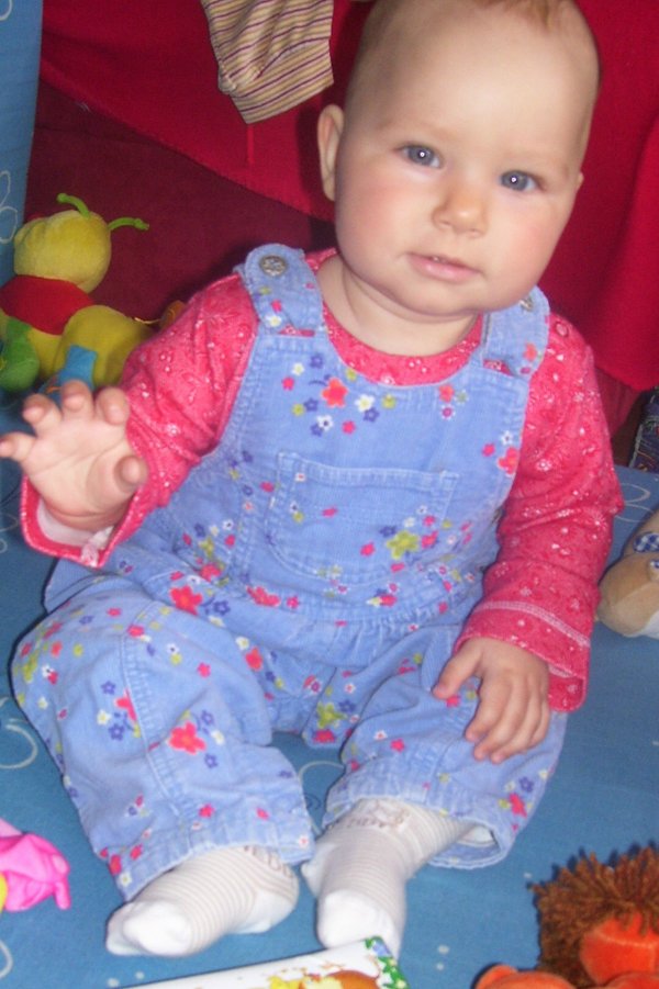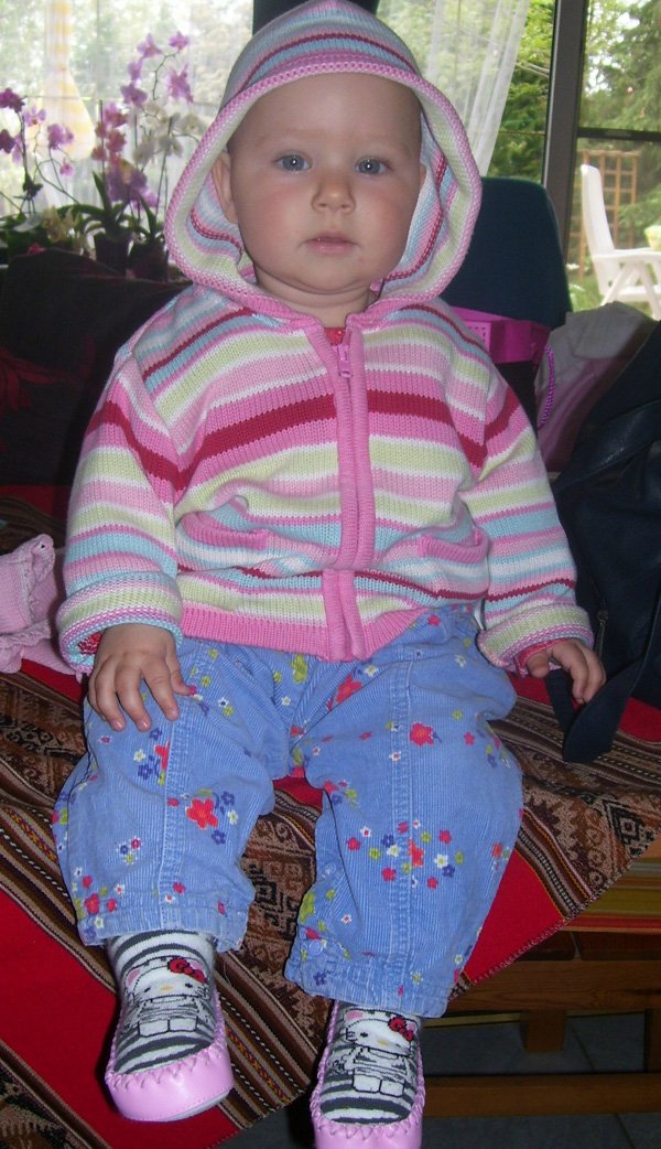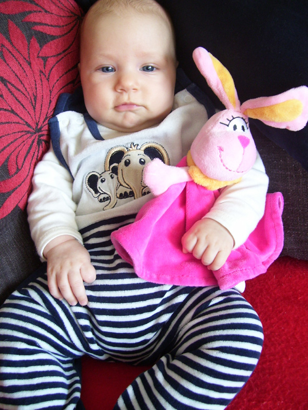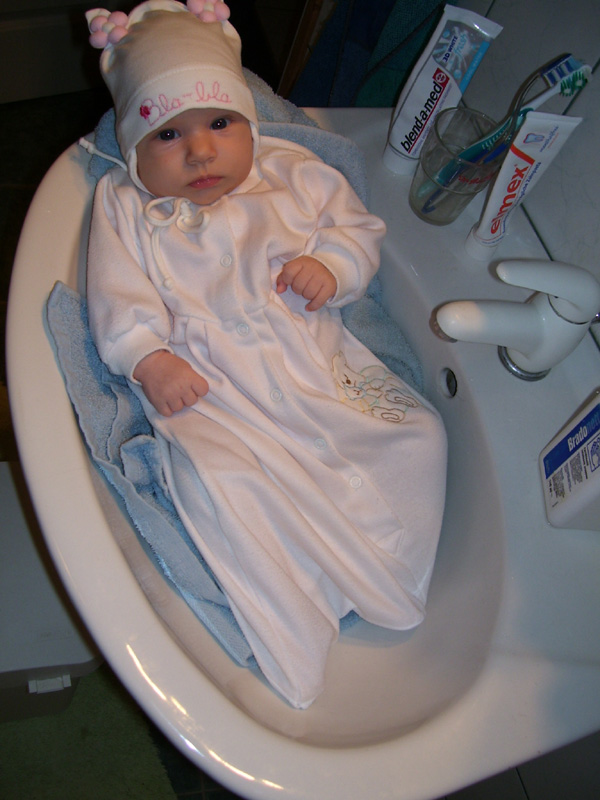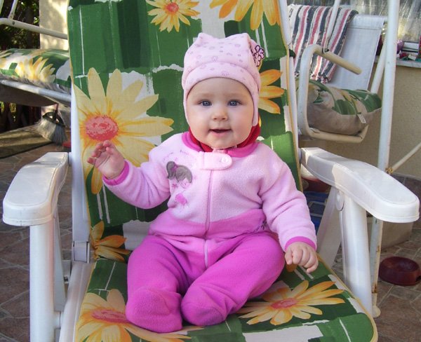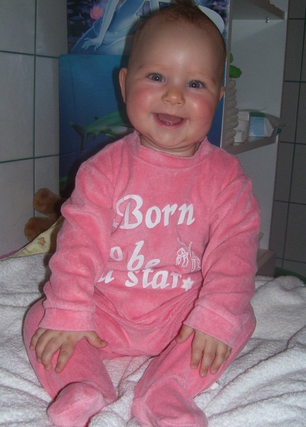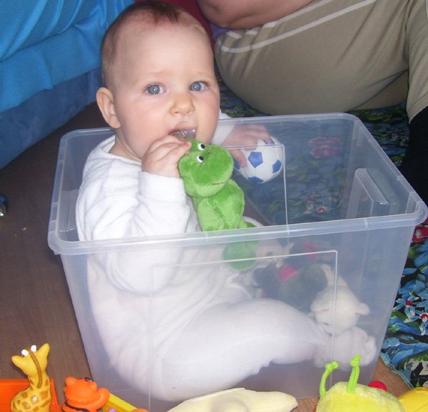Egy időben már különböző dolgokra tudod használni a két kezed: kapaszkodsz és játszol egyszerre. Nagyon jó az utánzóképességed is, amit megmutatunk, elismétled. Szerintem már majdnem mindent megértesz és bizonyos dolgokban nagyon szófogadó vagy: ha fürdőkádban azt mondom – csüccs – azonnal leülsz, de mikor a virágföldet kaparod ki a cserépből, hiába mondom, hogy – nem szabad – csak csinálod ugyanúgy tovább. Mindenesetre tudod, mikor rosszalkodsz, mert akkor rám nézel, – szabad e? De tiltásom ellenére, azért nyugodtan csinálod tovább…