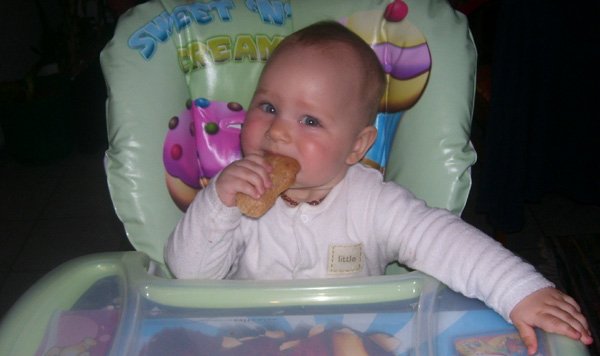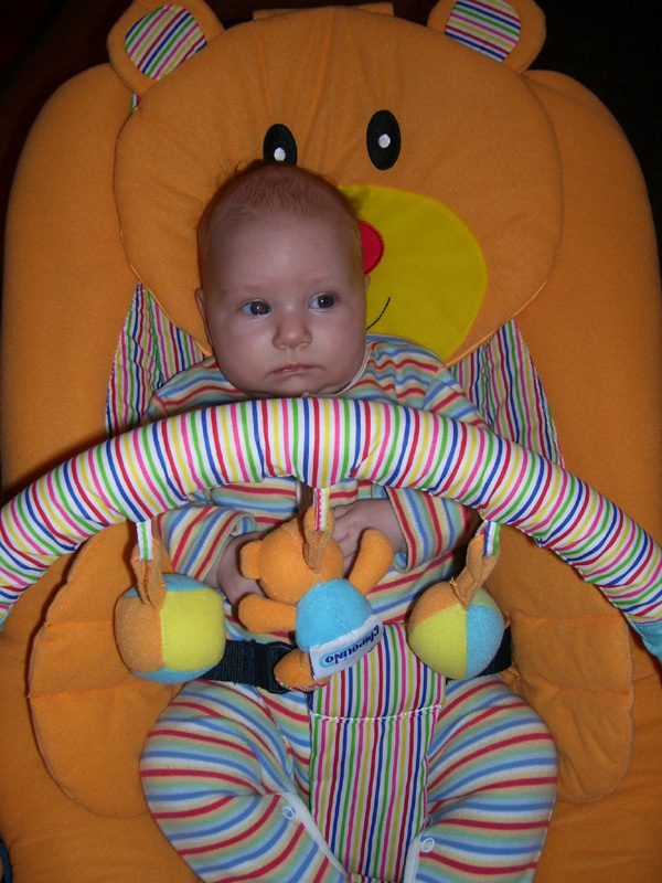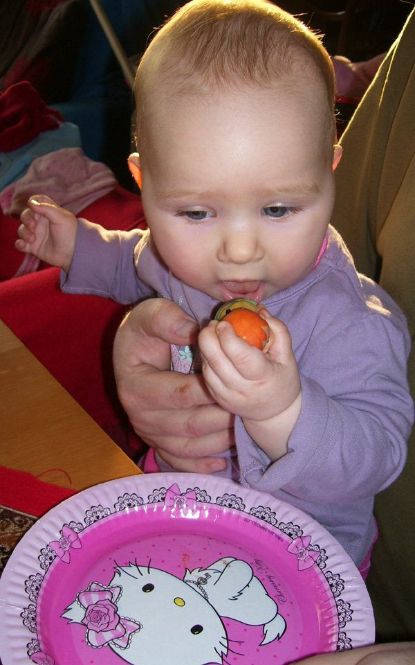 Kajálással semmi gond, van étvágyad, uzsonnára akár két gyümölcsjoghurtot is bepuszilnál. Már több mint 10 kiló vagy és 83 canti! Etetéskor kedvenc játékod, hogy kiskanállal kiveszel a tálkából egy köles golyót és a kiskanálban egyensúlyozod. Aztán mindent ledobálsz a földre…