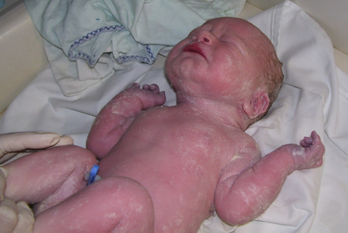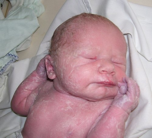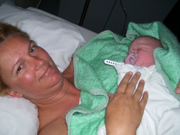 Miután lefilmeztem első perceit, a karomba adták, ahol megpróbáltam az aquanatalon dúdolt „Bóbiát” elénekelni neki, de elfelejtettem a szöveget, így béna lalalázás lett belőle, de hát Neki a hangom volt érdekes. Pislogott a vakító új világba, nézte, ki az akitől ezt a dalt már az előző, biztonságos, jó melegben sokszor hallotta… Nagyon aranyos volt, ahogy rám pislogott… – egészen elérzékenyültem.