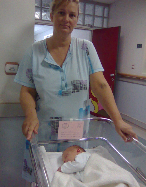 Reggel bevittem a levett köldökzsinórvért a sejtbankba, ahol lefagyasztották. Reggel kétszer próbált felkelni, de nem sikerült, majdnem elájult, aztán megfürdették. Délelőtt betolták hozzá a babát, ahol hosszú ideig csodálta édesdeden alvó babája arcát és grimaszait, ahogy a kis tolókában feküdt.