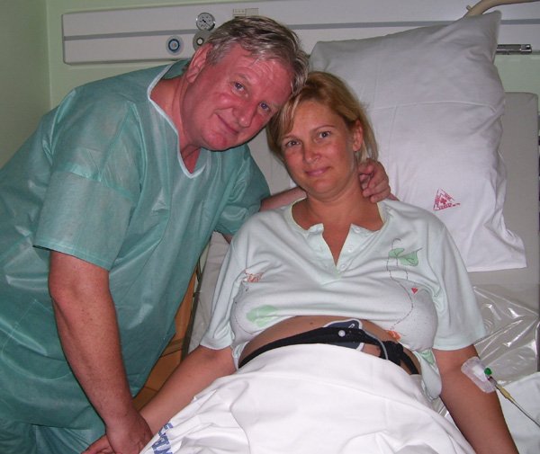 Szóval tegnap reggel UH, – rendben volt minden, de természetesen ismét konstatálták, hogy nem fordult meg. Tulajdonképpen régóta aggódtam, vajon miért nem fordul meg, lehet valami baja van? – Megvan annak az oka – mondják a szakemberek. – Hát tényleg megvolt: rövid volt a köldökzsinór, és a nyakára is volt tekeredve. Így aztán jobb is, hogy császár lett. Este nyolcra hívtak be minket a kórházba, infúzió, vérvétel (mindkét karból, – pedig Andi már az egyiktől is el szokott ájulni), antibiotikum, és vártuk az orvost a szülőágyon.